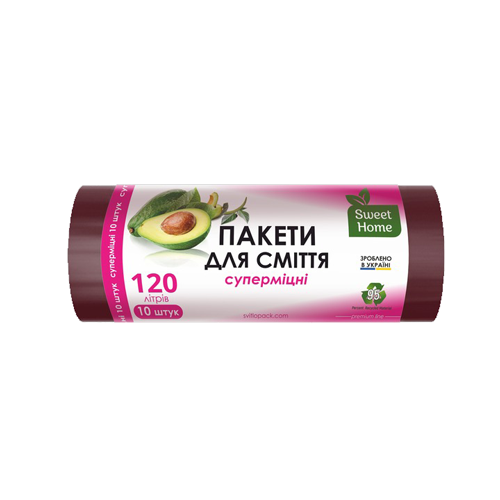 Сверхпрочные мусорные пакеты Sweet Home для большого объема мусора до 120 л. Такие пакеты необходимы в каждом доме и офисе. Широко применяются для сбора мусора на выездных мероприятиях, в зонах кейтеринга и т.д.