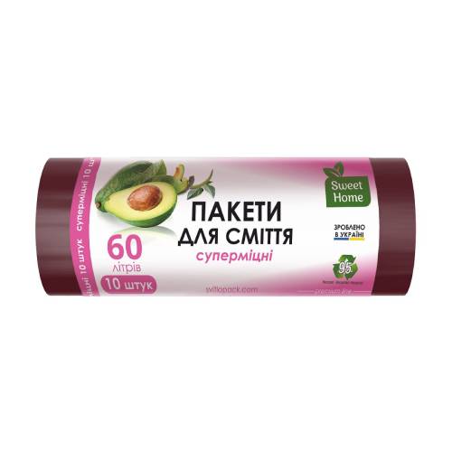 Сверхпрочные мусорные пакеты Sweet Home для большого объема мусора до 60 л. Такие пакеты необходимы в каждом доме и офисе.