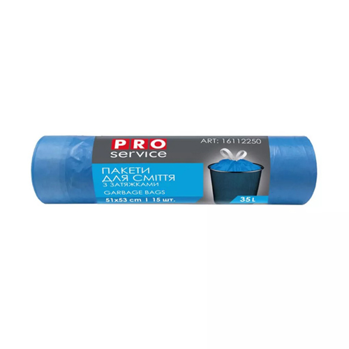 Пакеты для мусора Pro Service с затяжками 35 л 15 шт. Синие (16112250)