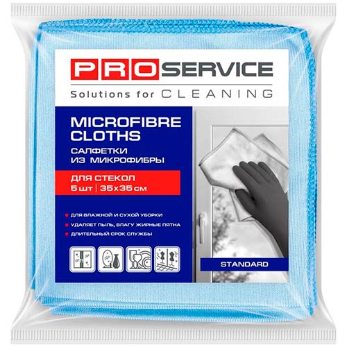 Салфетки PRO service из микрофибры для стекол обладают специальной гладкой поверхностью и предназначены для протирки и полировки стеклянных, зеркальных и хромированных поверхностей, элементов мебели, декора и сантехники, особо требовательных к внешнему виду, наличию прозрачности и блеска.