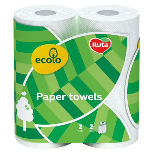 Полотенца бумажные Ruta Ecolo двухслойные 2 рулона Белые (47210)