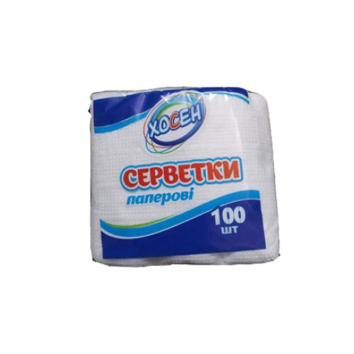 Салфетки Хосен однослойные 21x23 см 100 шт. Белые (17448)