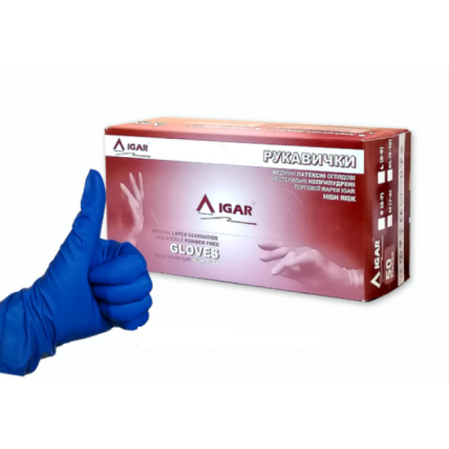 • Перчатки IGAR латексные L 50 шт. Синие (7609999)
