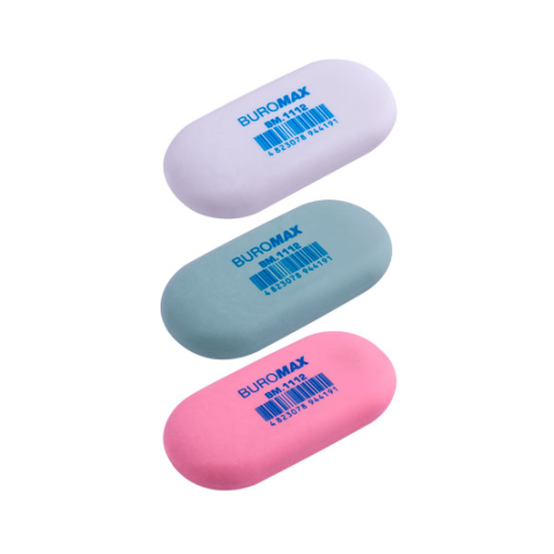 Овальный ластик Buromax стирает чернографитные карандаши 3Н-2В с любых видов бумаги, не оставляя разводов и не повреждая поверхность. Формула "Dust – Free" – чистое и аккуратное стирание.