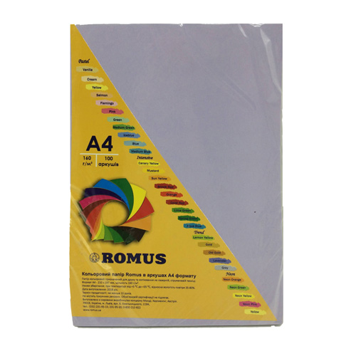 Бумага цветная Romus А4 160 г/м2 100 листов Сиреневый (R51284)