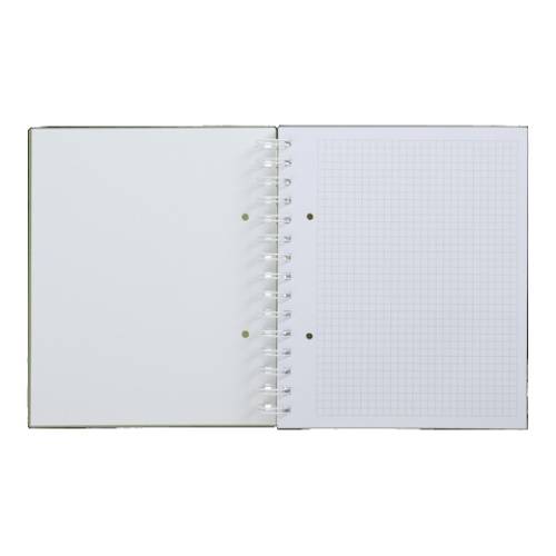Колледж-блок на пружине серии МИЛИТАРИ от BUROMAX – для ведения записей, конспектов, заметок, черновиков, графических зарисовок и т.д. Может использоваться работниками офисов и производств, государственных учреждений, финансовых организаций, учениками, студентами и преподавателями. 120 листов формат мини В5 (170х205 мм) внутренний блок: белая офсетная бумага плотностью 70 г/м² линовка в клетку материал обложки: жесткий пластик, защищающий записи от намокания, смятия и загрязнения тип скрепления: металлическая пружина сбоку, которая обеспечивает легкое переворачивание листов и комфортное письмо с обеих сторон имеет микроперфорацию листов для простого и ровного их отделения листы внутреннего блока имеют отверстия для подшивки в скоросшиватель цвет обложки темно-зеленый