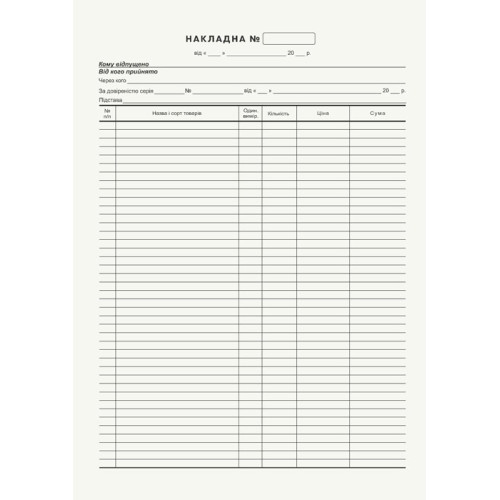 Назначение Накладная товарная