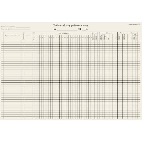 | Назначение | Табель учета |