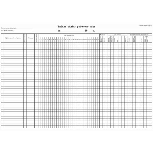 Табель учета рабочего времени А3 офсетный односторонний 100 лист. блок (R44077)