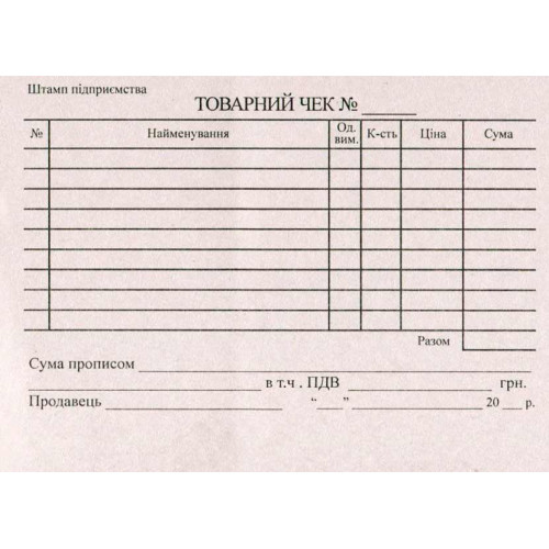 Товарный чек формата А6, газетнийпапир 1 нов.