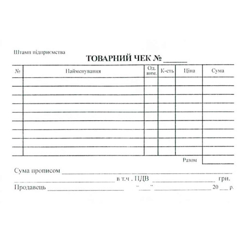 Товарный чек формата А6, офсетная бумага 1 новый.