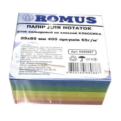 Бумага для заметок Romus Непроклеенная 85х85 мм 400 листов Классика (R880887)