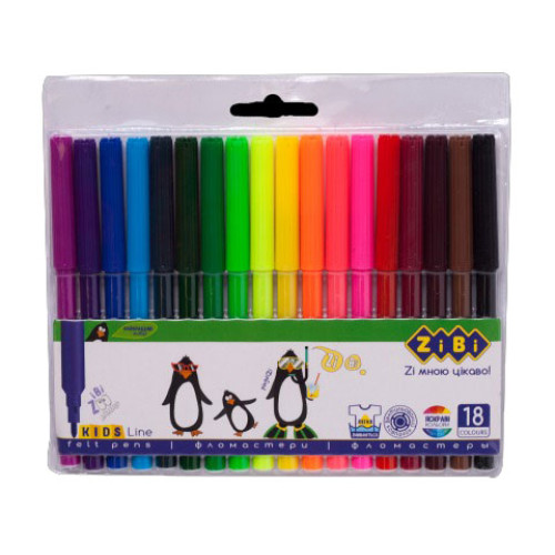 Фломастеры на водной основе ZiBi Kids Line 18 цветов (ZB.2803)